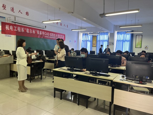2022年5月26日山东轻工职业学院第十届技能竞赛活动月机电工程系“歌尔杯”零部件 CAD 成图技术决赛在乐学楼圆满举办,竞赛采用师生同赛的方式进行。比赛现场,机电工程系系主任薛白,副主任烟承梅,东岳集团人力资源部经理荣婷婷,新华制药人力资源部经理逯之玮,人力资源部招聘负责人韩印莅临指导,到场企业领导提出企业对数字化CAD技术人才的需求状况。