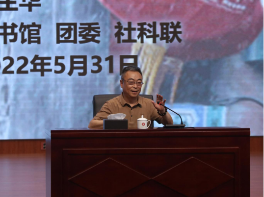 2022年5月31日下午16点,图书馆邀请周村区文旅局党组成员王生华先生,在学术报告厅(K123)为在校师生作了一场题为“旱码头”的故事--“鲁商故里,丝路之源”的讲座。