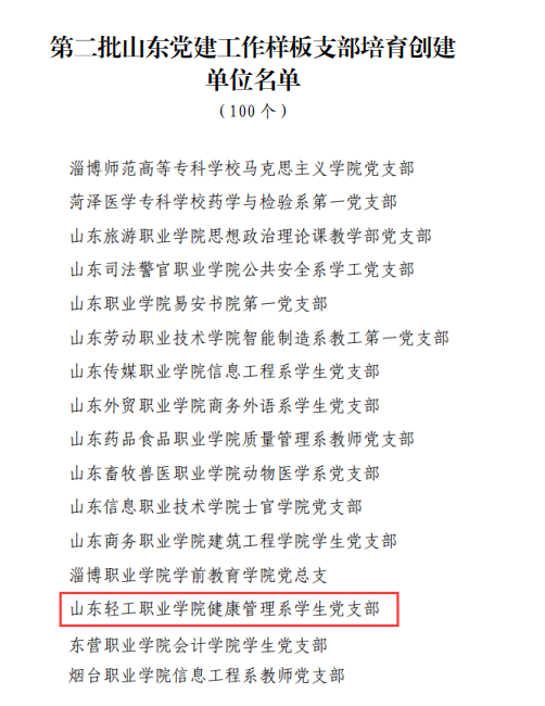 健康管理系学生党支部入选“山东党建工作样板支部”培育创建单位
