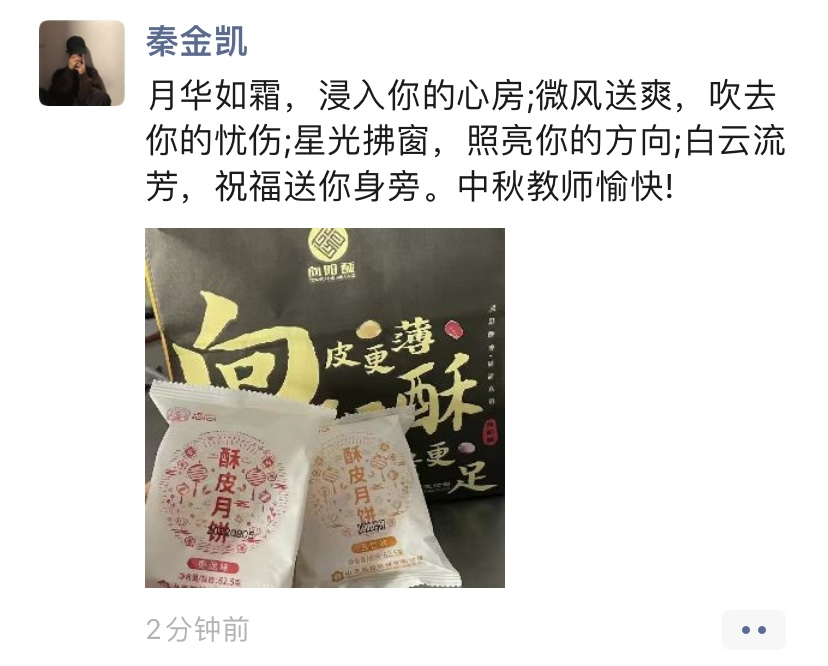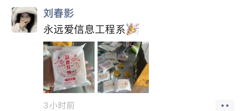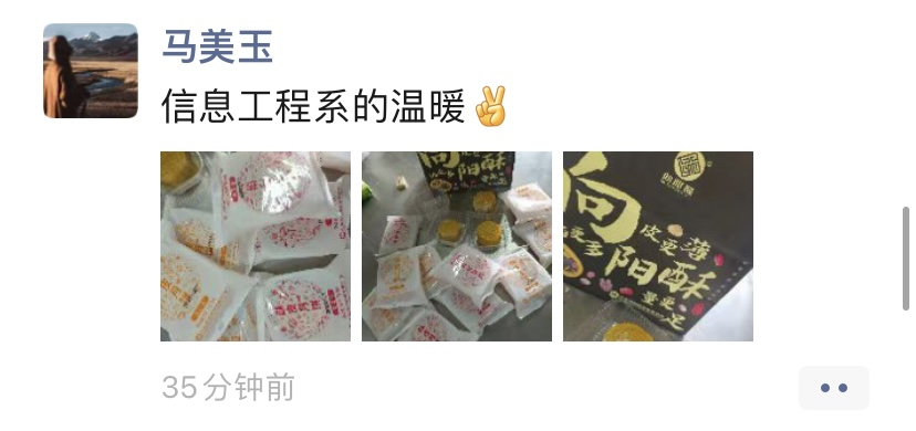 当一个个月饼送到同学们手中时,他们的脸上洋溢着喜悦,他们的心里透着甜美。慰问活动结束后同学们纷纷通过发动态或朋友圈等方式来表达自己对院系、对学校的感谢。