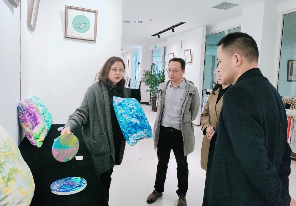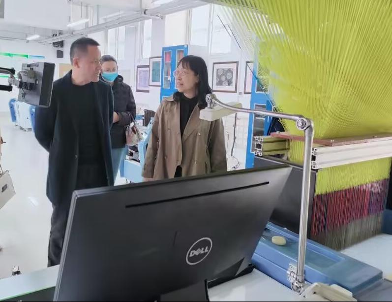 随后,袁鹏书记一行参观了系部的新产品研发中心、织物打样实训室、艺术印染中心等实训场所。