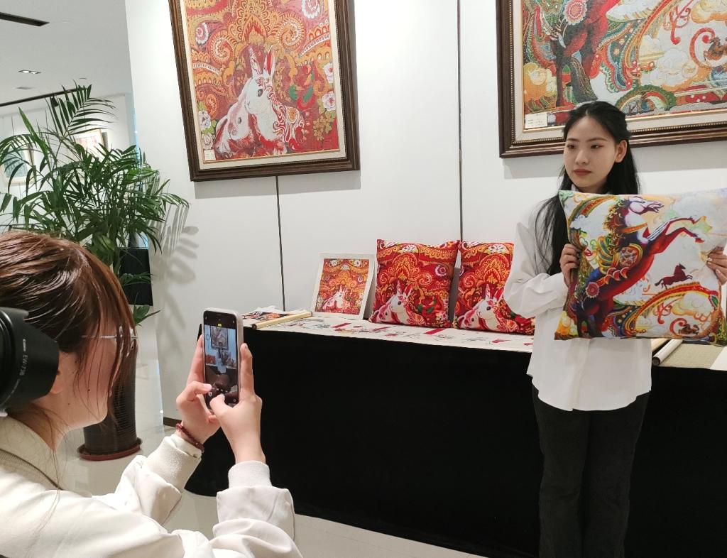 “我是在同学推荐下来展厅打卡的,在这里不仅看到了种类丰富、形式多样的文创产品,更是听到了传统文化知识的讲解,让我感受到了传统艺术的魅力,非常‘走心’!”一位前来观展的同学说。