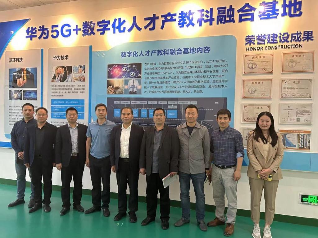 袁雷一行听取了南京工业职业技术大学的历史沿革并介绍了山东轻工职业学院的发展历程,随后孟英杰和张庆海就嘉环的合作共建模式、职教本科教材开发和课程开发进行了深入交流,为山东轻工职业学院通信技术专业升本提供了宝贵经验。校企双方就教师培养,职教本科教师资质和数字化人才培养标准进行了深入探讨。随后袁雷一行参观了华为5G+数字化人才产教科融合基地和南工—华为产教融合基地。本次实地考察交流受益匪浅,对嘉环ICT产业学院的未来发展提供了思路。