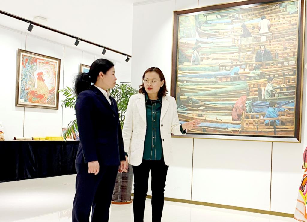 讲座后,李群英和工作室学生陪同王翠玉参观了“奋进新时代·筑梦新征程”师生作品展。