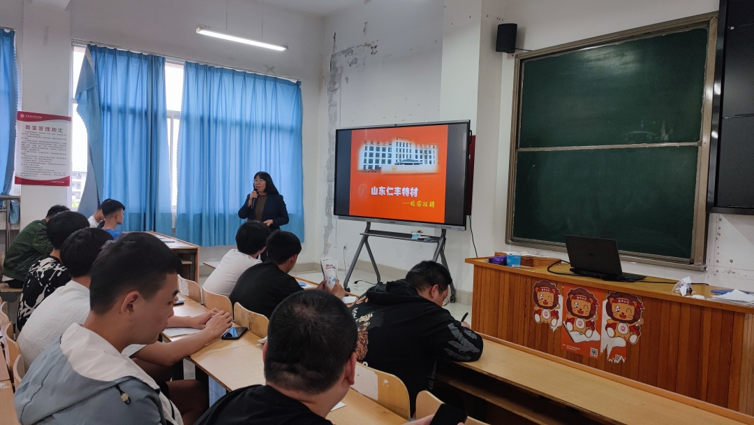 山东仁丰特种材料股份有限公司人力资源部张经理介绍了本单位的公司基本情况、职位晋升路径、本次招聘的用人岗位需求等方面的具体信息,促进了同学们对企业的了解。