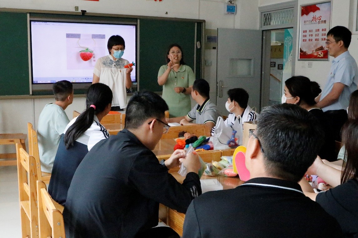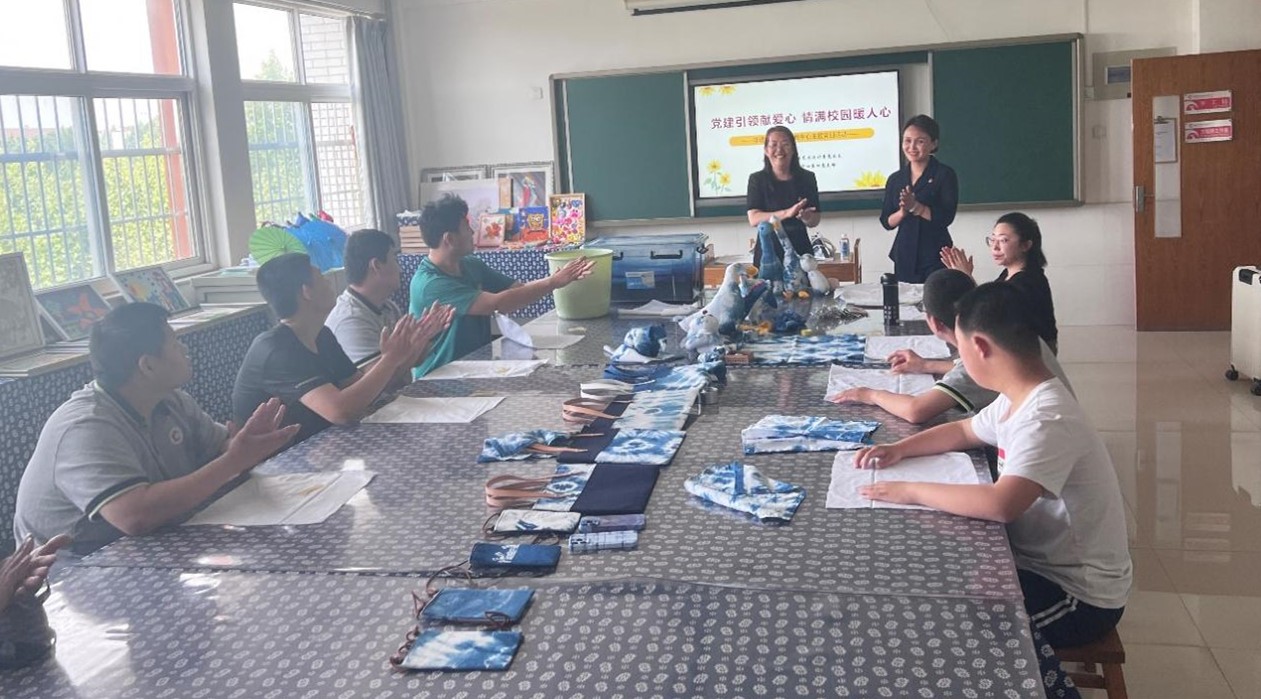 本站讯(通讯员 刘春慧)每年五月第三个星期日,是全国助残日。助残日前夕,山东轻工职业学院艺术设计系党总支的党员老师们来到淄博市特教中心,以“党建引领献爱心,情满校园暖人心——非遗技艺进市特教中心”为主题开展主题党日活动,让市特教中心的学生们更加近距离的体验非遗古法草木染技艺和羊毛毡作品创作体验项目,帮助孩子们身临其境的感受艺术的魅力,并鼓励孩子们大胆的发挥自己的想象力,亲身动手进行创作。