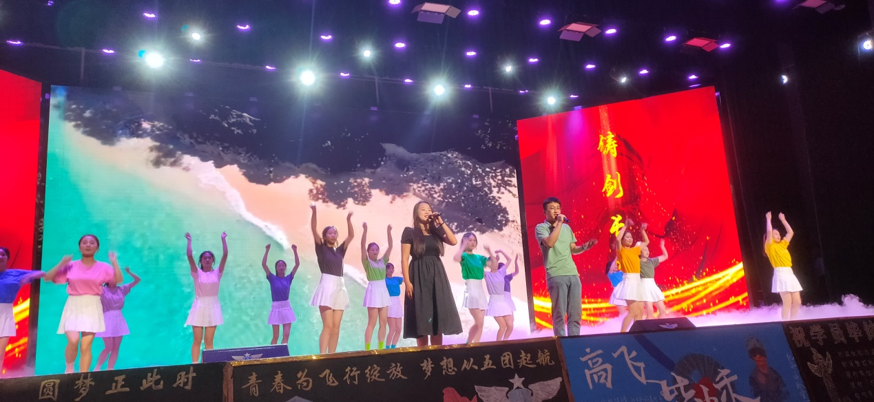 本站讯(通讯员 高立沛)6月7日晚,94521部队“雄鹰启航 • 铸剑长空”学员结业晚会在部队大院礼堂成功举办,学校党委学生工作部部长杨永亮应邀参会。由我校选送的配乐诗朗诵《青春万岁》和歌伴舞《最初的心 最美的梦》同台演出,致敬人民子弟兵,表达对人民军队的热爱和崇敬之情。