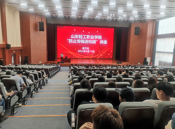本站讯(通讯员 陈梁)6月14日下午,保卫处在图文信息楼K123报告厅,组织开展“防止传销进校园”讲座活动。淄博市市场监管局、淄博市教育局、周村区市场监管局相关人员,各系院学管主任、专兼职辅导员、学生代表共计350余人参加。讲座由保卫处负责人史新伍主持。