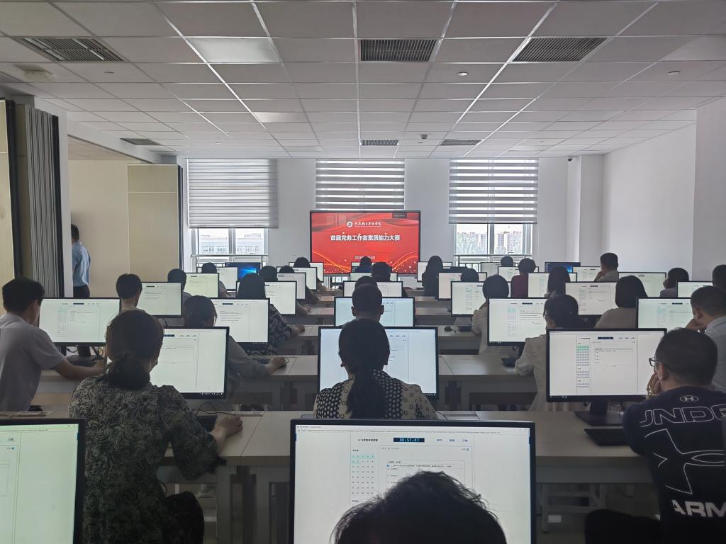 本站讯(通讯员 宗岳)6月15日下午,学校在图文信息楼503机房举行首届党务工作者素质能力大赛,全校各党组织书记、委员、组织员等党务工作者90余人参加大赛,党委委员、党委组织统战部长常立出席活动并在赛前讲话。