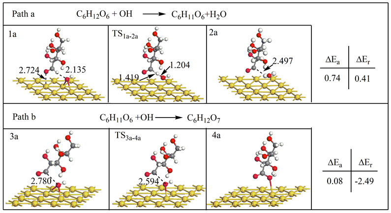 尽管Au基催化剂在葡萄糖氧化成葡萄糖酸方面显示出巨大的潜力,但详细的反应机制仍不清楚,这阻碍了直接葡萄糖燃料电池(DGFC)的发展。该研究利用密度泛函方法(DFT),展示了葡萄糖在Au(111)面上新的吸附构型和氧化机制。从计算的能量途径来看,开链葡萄糖的氧化涉及到被吸附的OH对C-H键的解离,而环状葡萄糖的氧化是由O-H键断裂引起的,并且优先经历环状开放过程,生成开链形式的葡萄糖。同时,研究结果表明,吸附的OH有助于降低反应过程的活化能。相应的反应机理通过吸附物和催化剂电子态密度(PDOS)得以解释。研究揭示了吸附结构的重要作用,为葡萄糖燃料电池阳极催化剂的研发设计提供了理论指导。