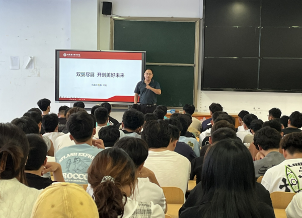 机械设计与制造专业带头人严纪兰,从专业人才培养的角度,给同学们做了全面讲解,要求同学们尊重专业,努力学习专业知识,鼓励同学们要有创新意识,要有责任担当,不负韶华,不负时代,在青春的赛道上奋力奔跑。