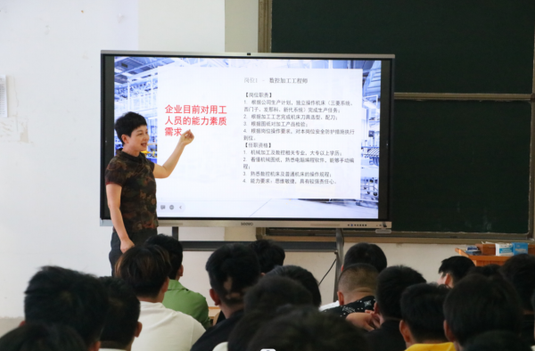 机电设备技术专业带头人烟承梅,从专业培养角度,重点从专业群及专业情况,专业与产业关系、职业面向、培养模式、课程体系、技能大赛、继续教育等方面给大家做了一个全面讲解,要求同学们要明确目标,努力学习,成为一个复合型、创新型、发展型技术技能人才。