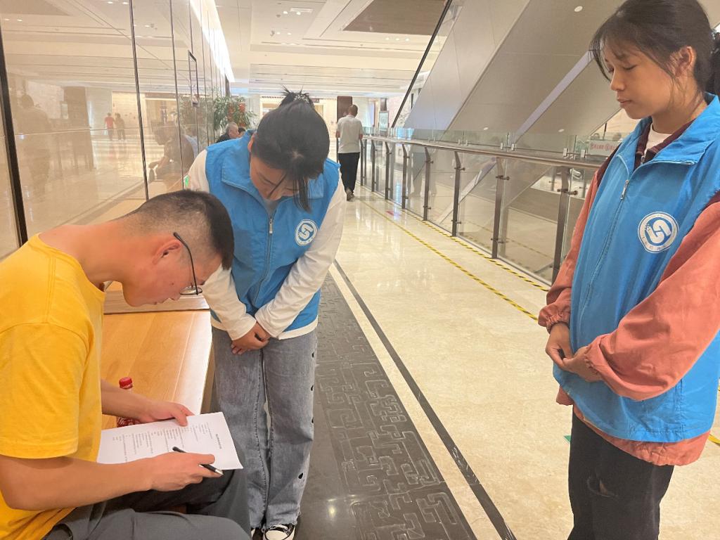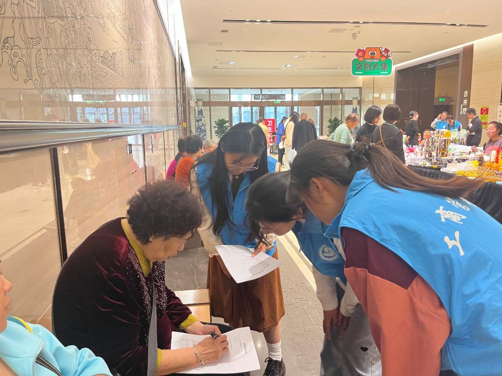 队员在完成志愿讲解工作之后,向游客发放了调研问卷,调研游客们对馆内印象最深刻的场馆、馆内还有哪些地方需要改善、是否感兴趣馆内的文创产品等方面。“我们对陶琉博物馆感到惊讶,没想到有这么多宝藏展厅,居然有这么多样式的陶琉工艺品,我对每件琉璃工艺品都爱不释手,我强烈推荐我的小伙伴们来淄博打卡!”来自大连大学的王同学在填写问卷后说到。