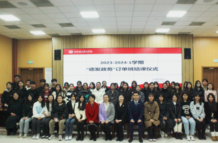经过本学期的初步探索与合作,“德发政务”订单班已完成“平台+方向”课程体系中“平台课”的政务服务政策类解读与行政礼仪培训等内容,后续将继续开设行政许可法、行政服务能力、突发事件等方面的培训课程。同时在课程教学、人才培养、项目合作与社会服务等方面取得初步成效基础上,学校将继续丰富合作成果,推进政务服务技能鉴定工作,为学生的个性化发展和多样化就业奠定基础。