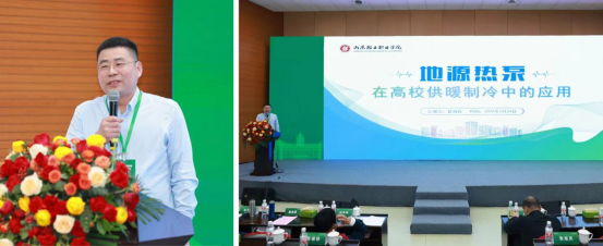 本站讯(通讯员 曹付猛)3月24日,山东省学校后勤协会高效能源能源管理培训会议在湖南省能源计量产业园召开,我校获评“2023年度低碳校园建设先进单位”荣誉称号,我校后勤处处长管清武以“地源热泵在高校供暖制冷中的应用”为题分享发言。