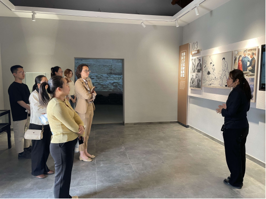 参观结束后,王茜书记一行与焦裕禄纪念馆馆长焦玉星进行焦裕禄家风剧本的交流研讨。焦馆长肯定了大思政背景下立足当地英雄人物,挖掘英雄人物故事,创新沉浸式体验的形式,对我们的剧本从内容到表现手法等方面提出了修改意见。