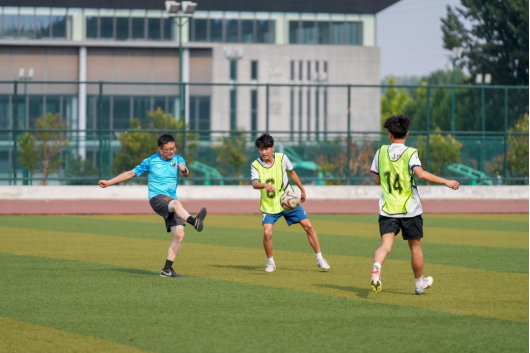 六月骄阳似火。2022届毕业生、原足球社团社长程寒冰担任本次比赛裁判。伴随裁判一声哨响,赛场上的球员热情高涨,师生的活力和激情仿佛被夏日的阳光所点燃。球场上,队友们并肩作战,共同追逐胜利的目标,他们奔跑着、传球、射门,每一个动作都充满了力量和决心。师生共同踢出了比赛的激情与青春的热烈。相信这股团结的热潮会持续燃烧下去,奋勇拼搏的足球精神也将激发同学们在生活的挑战中取得胜利。
