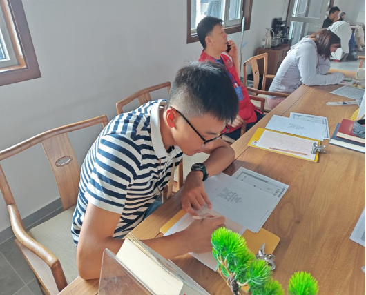 随后,志愿者队伍来到高青县的标志性建筑---文昌阁。通过观察文昌阁的建筑风格与特点,测量、记录基础数据,专业老师讲解建筑绘图的要领和技巧后,大家手持画笔,小心翼翼地在画纸上勾勒出细腻的线条,一副副文昌阁平面图便跃然纸上。