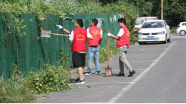 经与社区交流,志愿服务队确定了活动各项细节。活动当日,正值夏季,社区内杂草丛生。在社区工作人员的简要介绍和分工后,志愿者们统一行动,手持除草工具,迅速投入到紧张的清洁工作中。