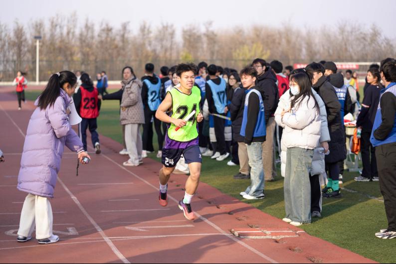 本次比赛共有各系院9支队伍、216名师生参与。虽然时值寒冬、冷风习习,但是赛场内外,老师们、同学们的热情丝毫没有减退。比赛过程中,看台上啦啦队为运动员加油助威、欢呼喝彩,呐喊声此起彼伏;跑道上运动员们个个精神振奋、全力以赴,朝着同一个目标奋勇向前,这正是“一二·九”精神的写照。