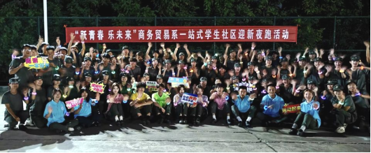 “跃青春·乐未来”行动打破体育活动零散化、季节化局限,构建起常态化、品牌化的育人体系。从新生入学“荧光夜跑”破冰启航,到每周一次的社区常态化夜跑;从班级内部的气排球、跳绳“班班赛”,到学校“师生运动嘉年华”联赛;从与兄弟院系的友谊切磋,到备战校级阳光体育节的集中训练——活动贯穿全年、覆盖全员,形成“月月有活动、班班有赛事、人人都参与”的生动局面。行动特别注重趣味性与专业性结合,荧光夜跑、趣味标语、师生同台竞技等形式深受学生欢迎;更将专业特色融入体育设计,如物流专业的“载物接力”、营销专业的“推广障碍赛”,让学生在运动中潜移默化提升专业素养。