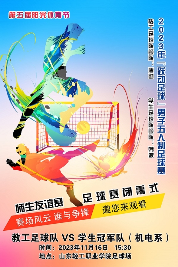 在这个初冬时节,让我们相约一起感受校园足球的热情与活力!“跃动足球”师生五人制足球友谊赛即将在体育场激情上演。