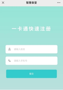 (2)一卡通用户快速注册,在打开的页面(下方图)中,输入姓名和手机号码,进行一卡通账号的快速注册。