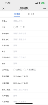 (3)填写你的姓名、证件号、入学年级及专业、工作单位及职务(选填)、联系方式以及入校事由、被访人姓名等信息。